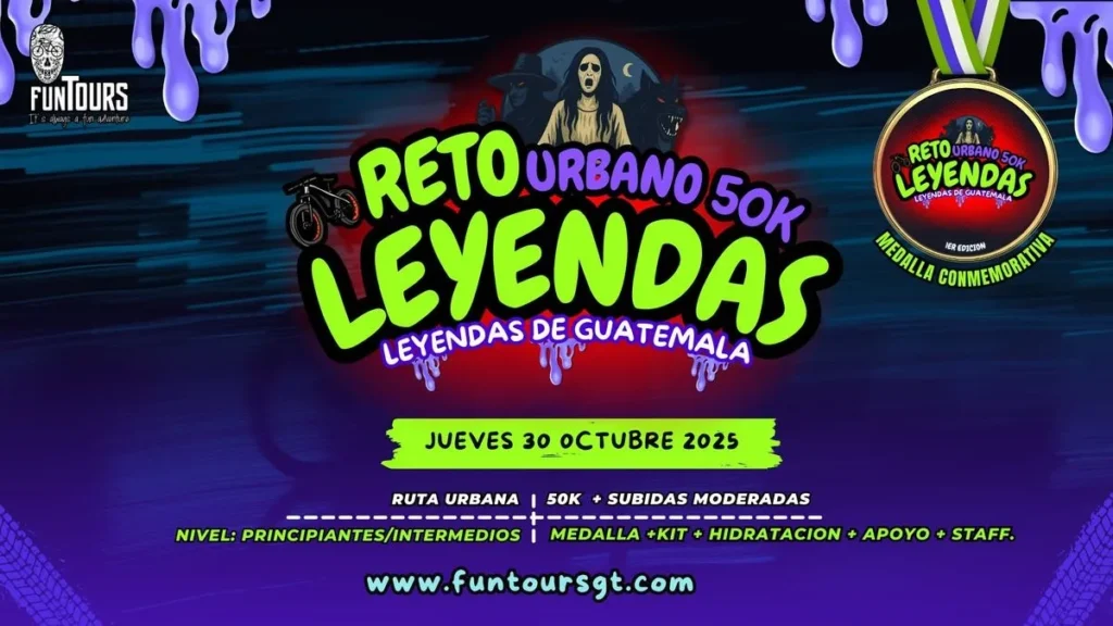 El próximo 30 de octubre de 2025 se realizará la primera edición del Reto Urbano 50K – Leyendas de Guatemala, una ruta nocturna de 50 kilómetros que combinará historia, cultura y ciclismo en un recorrido único por las calles de la ciudad.